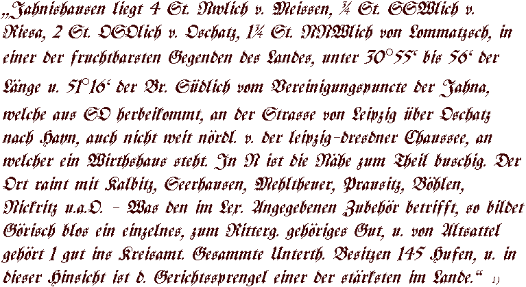 Franciscus Nagler, Sohn des Prausitzer Kantors und Schulmeisters, erinnert sich wie folgt an Jahnishausen: