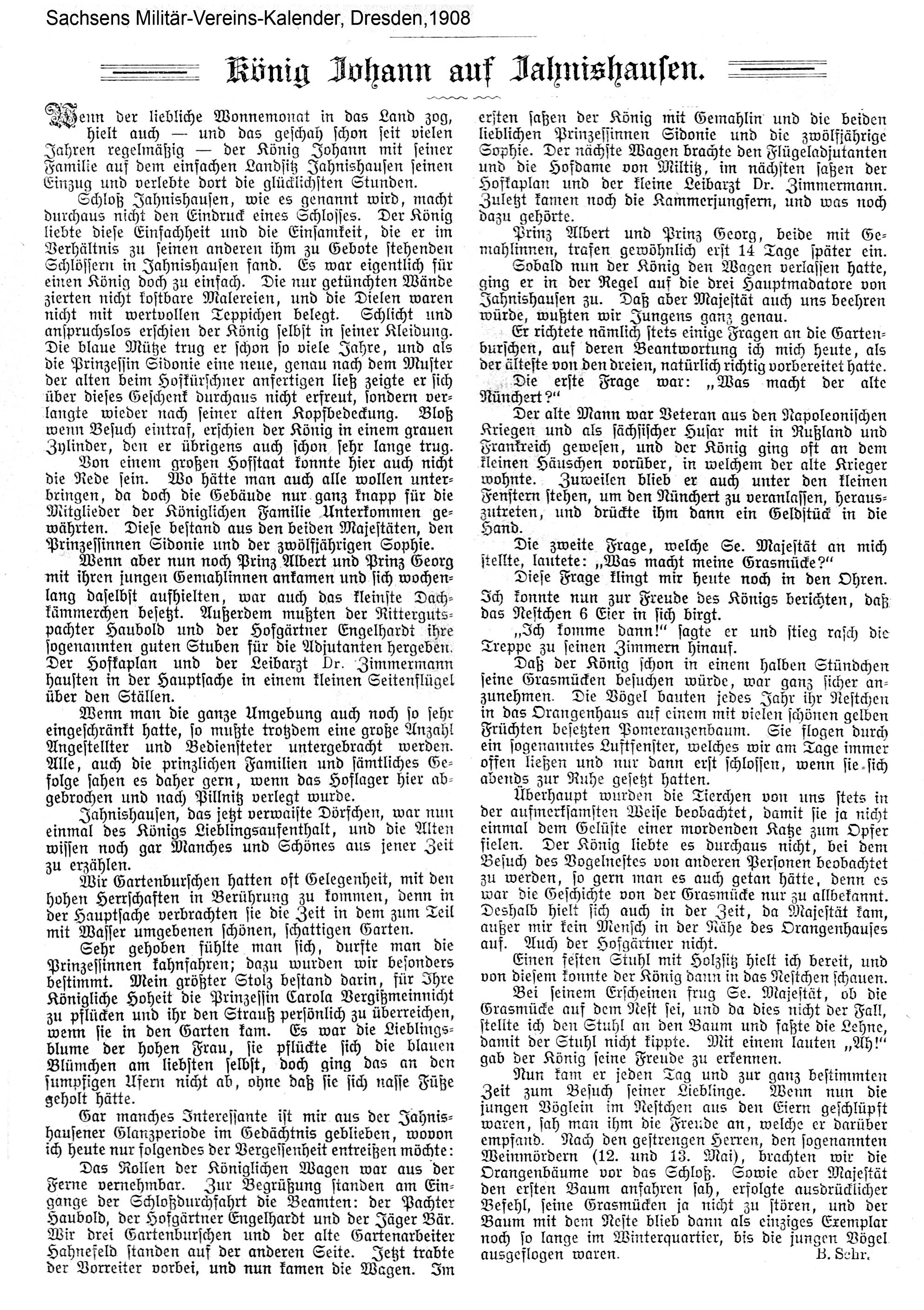 Erschienen in: Sachsens Militär-Vereins-Kalender Dresden, 1908, Seite 40f Zwecks besserer Lesbarkeit aus zwei Seiten auf eine Seite montiert. Das Original ist als Public-Domain Mark 1.0 eingestellt in den Saxonica / digitale Sammlungen der SLUB - Dresden: https://digital.slub-dresden.de/werkansicht/dlf/313026/48?tx_dlf%5Bhighlight_word%5D=Jahnishausen&cHash=22c6bc382ba385f9659029c4c11730a3