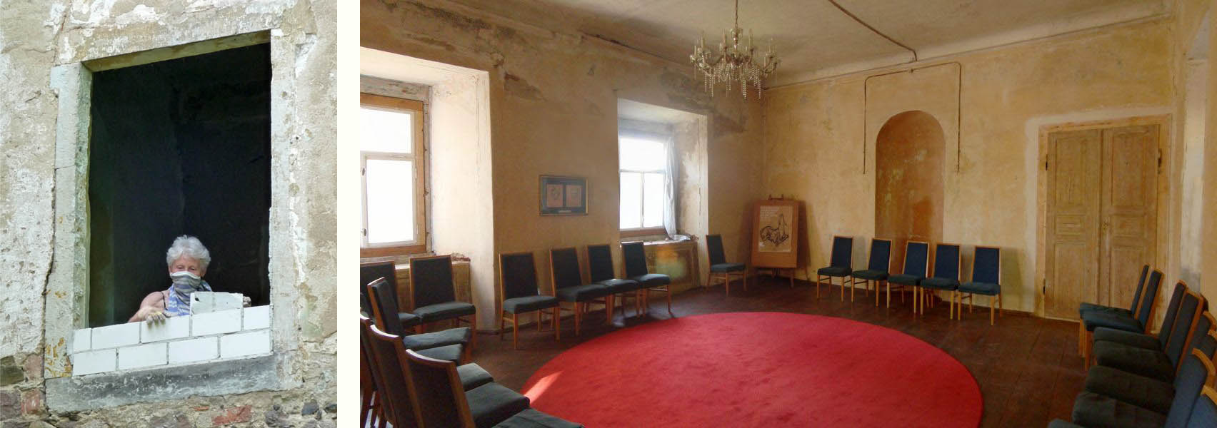 Fensteröffnen im Treppenturm, 2006 Saal im Westflügel, 2015 - Raum für Versammlungen und für kleine Veranstaltungen