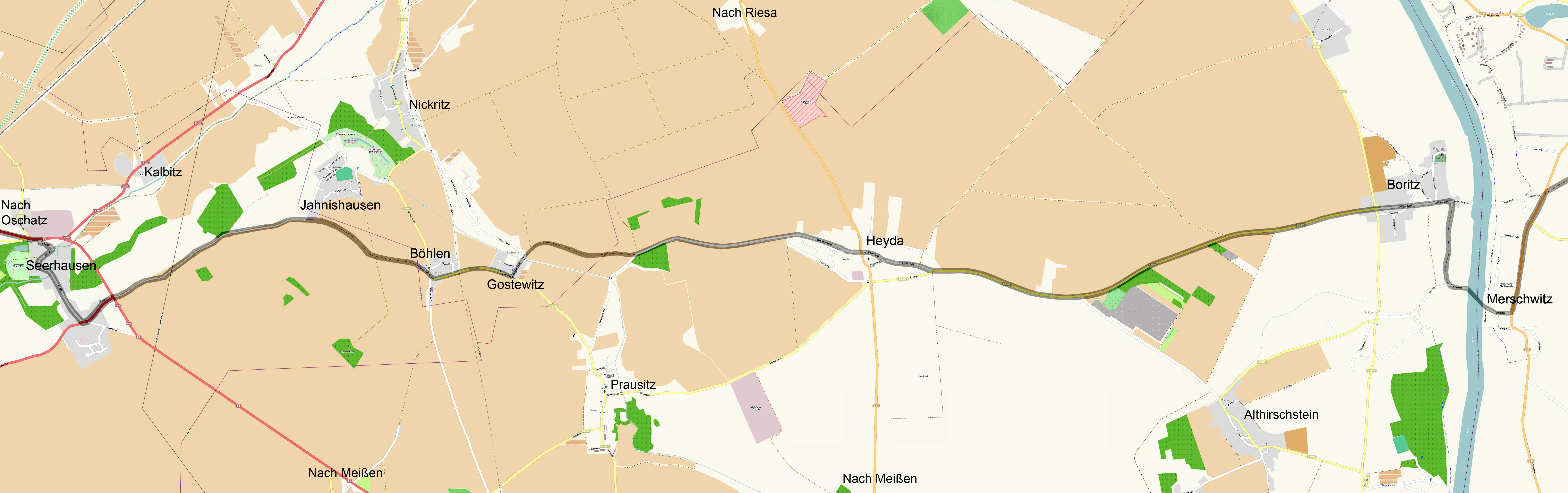 Die VIA REGIA zwischen Seerhausen und der Elbe. Karte hergestellt mit OpenStreetMap-Dateinen Lizenz: Creative Commons BY-SA 2.0 / 2012