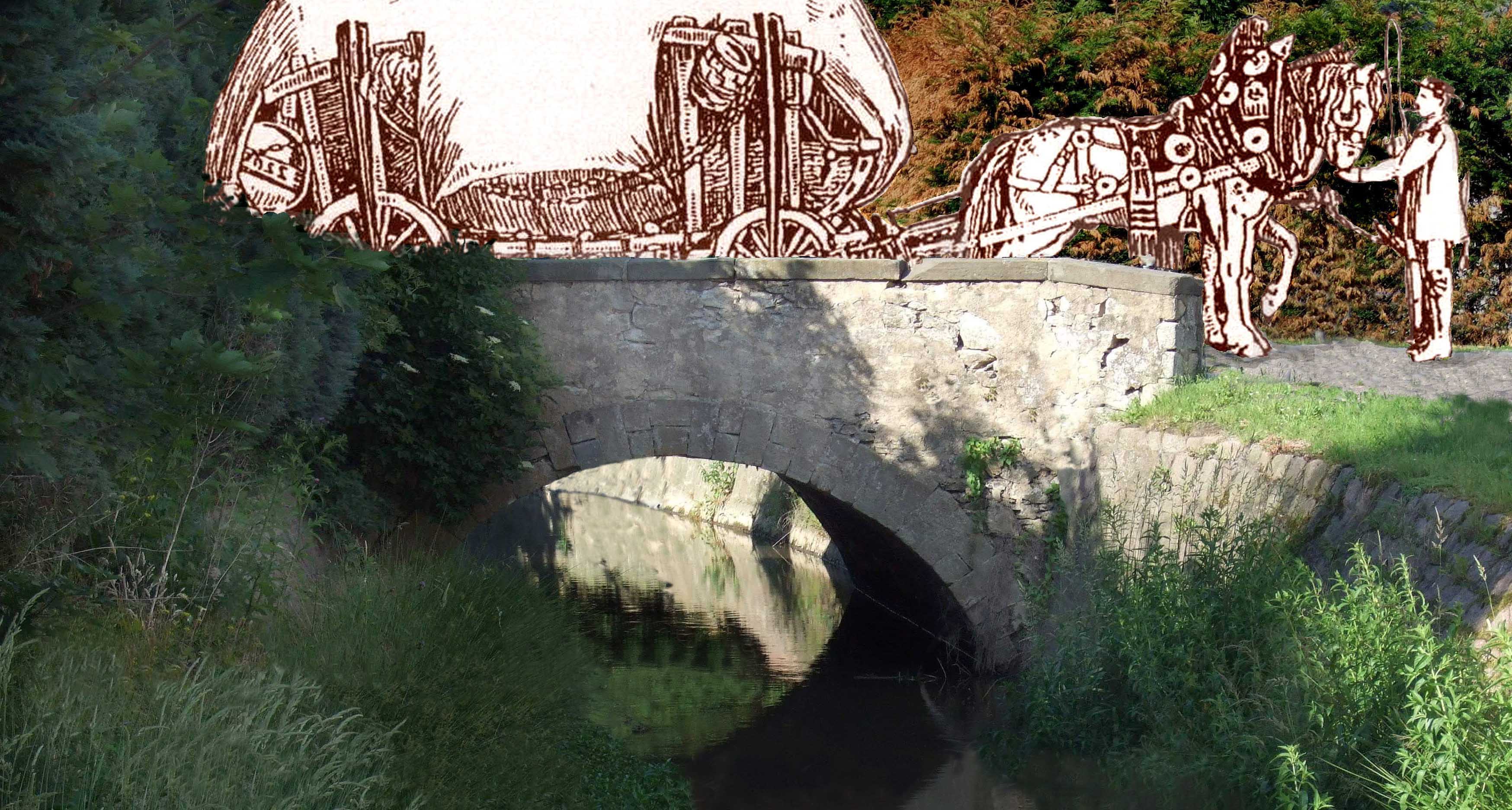 Fuhrwerk auf der alten Jahnabrücke in Seerhausen (Montage P. Griepentrog)
