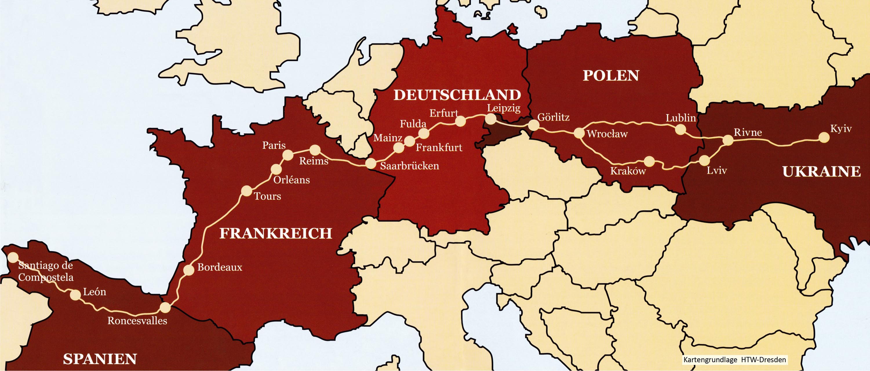 Während der ökumenische Pilgerweg durch Sachsen, Sachsen Anhalt und Thüringen, der sich auf weite Strecken an der historischen VIA REGIA orientiert, sich großer Bekanntheit erfreut, ist die Europäische Kulturoute (siehe obige Karte) in der Region Riesa bisher noch wenig im öffentlichen Bewußtsein, weshalb sich Anfang 2022 in Riesa eine Initiative für die regionale VIA REGIA bildete.